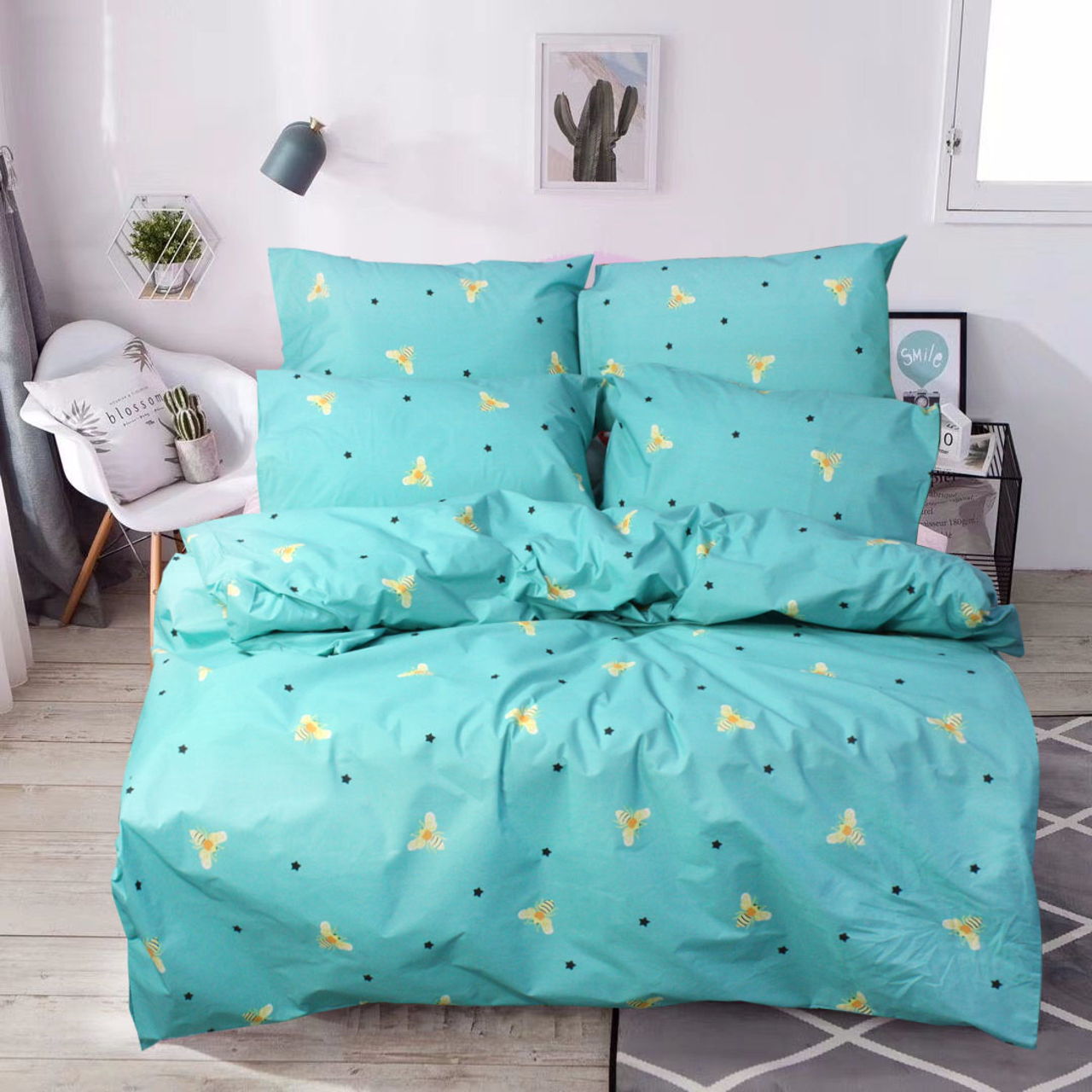 Material: bumbac. Fete de perna 50x70 - 1 buc. Plapumă 145x210 - 1 buc. Cearșaf 145x214 1buc. Densitate 125 g/m.